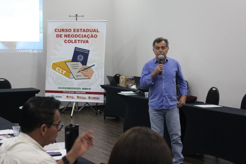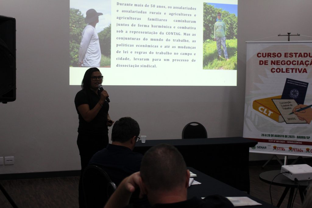 Entre os dias 26 e 28 de agosto de 2025, a cidade de Bauru/SP recebeu o Curso Estadual de Negociação Coletiva, iniciativa que reuniu mais de 30 dirigentes de sindicatos de empregados e empregadas assalariados(as) rurais de diversas regiões do estado. O encontro teve como foco a formação e o aprimoramento das lideranças sindicais, com vistas à elaboração de acordos coletivos de trabalho mais sólidos, justos e representativos para a categoria.