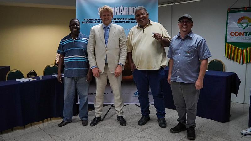 A FERAESP esteve representada por Aluísio Santos (secretário-geral), Rubens Germano (diretor de finanças), Eduardo Porfírio (diretor de formação) e Gilson Lago (diretor agrário e de meio ambiente). A delegação destacou a importância de ampliar o diálogo social e reforçar mecanismos de fiscalização, prevenção a abusos e promoção do trabalho digno para os assalariados rurais do café.