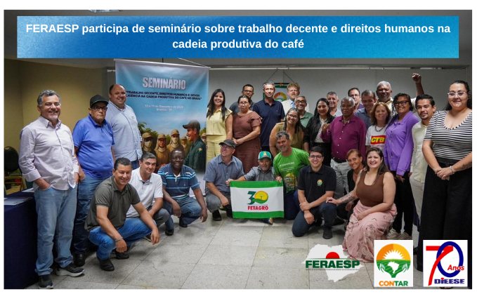 A Federação dos Empregados Rurais Assalariados do Estado de São Paulo (FERAESP) participou, nos dias 10 e 11 de dezembro de 2025, do Seminário “Trabalho Decente, Direitos Humanos e Devida Diligência na Cadeia Produtiva do Café no Brasil”, realizado em Brasília/DF.